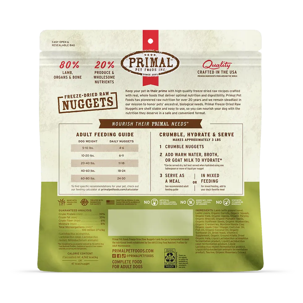 Lamb Recipe Freeze-Dried Raw Nuggets Dog Food, Primal