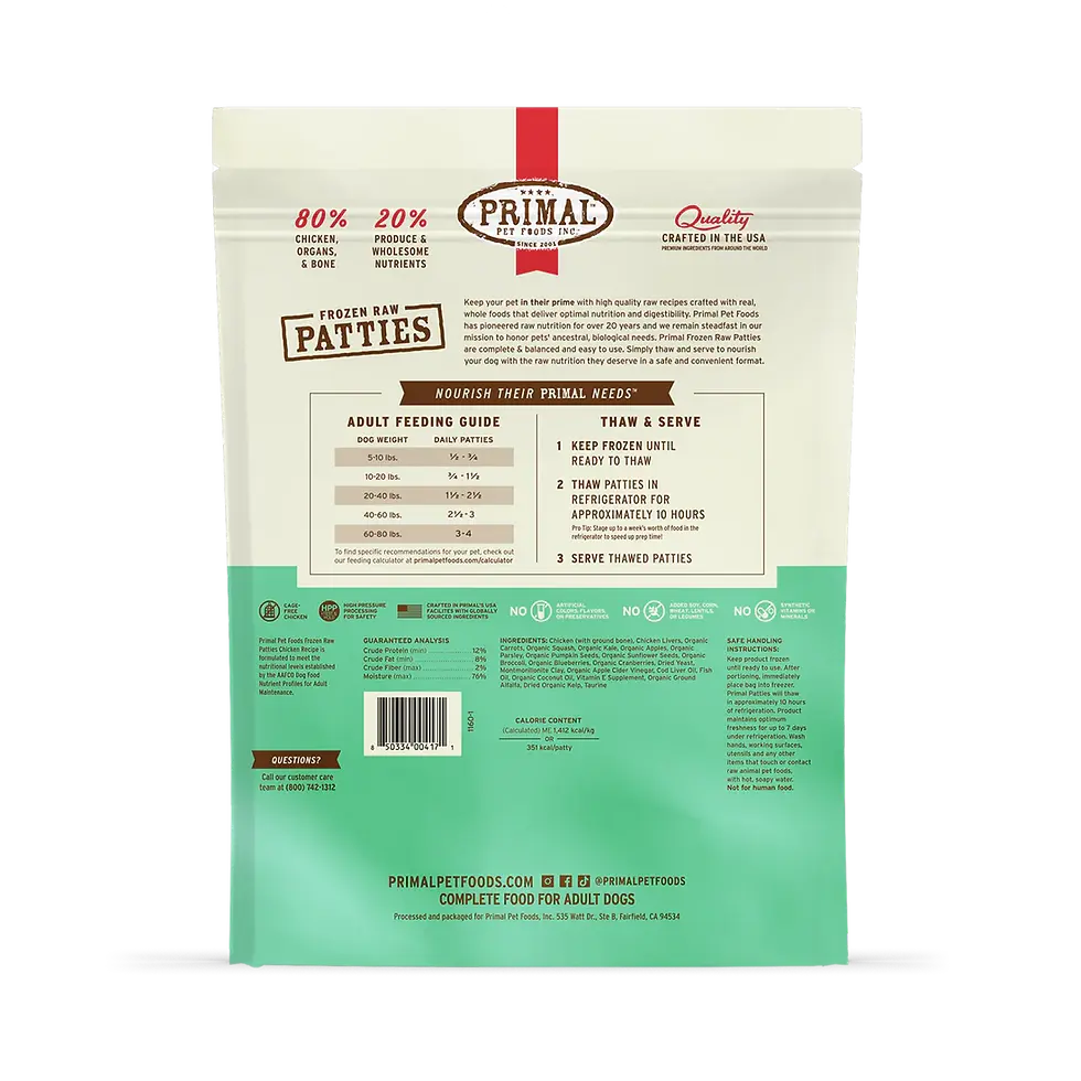 Chicken Recipe Frozen Raw Patties Dog Food, Primal